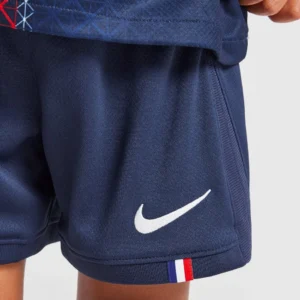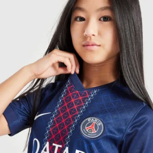 La tenue Domicile 2025/26 du PSG s’inspire de trois monuments emblématiques de Paris. Une large bande centrale vient casser la sobriété de cette tenue bleue standard, un détail de conception inspiré de l’ossature des icônes architecturales.