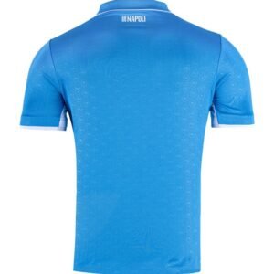Le maillot domicile EA7 Napoli 2024-2025 est principalement bleu ciel et semble être une nuance de bleu légèrement plus claire que le dernier